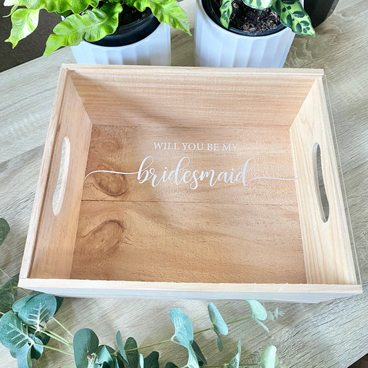 Engraved gift and keepsake boxes, perfect for asking your squad to join in on your big day