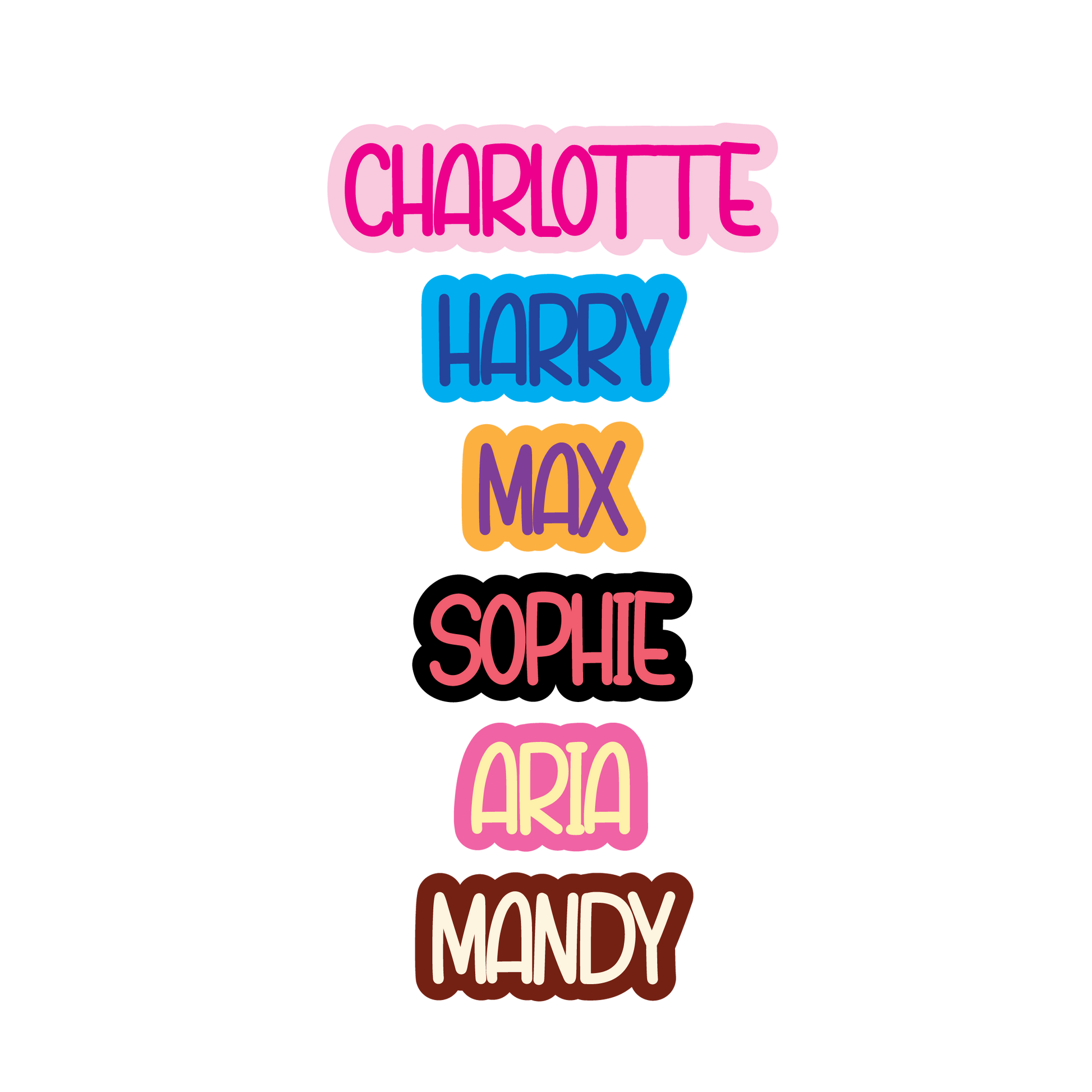 Please note: Names with an 'i' will have the dot connected to ensure it doesn't go missing.